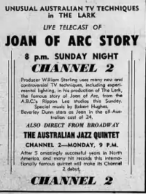 - 1 2 3 "The Lark will Open a New Era for Melb TV Drama". The Age. 14 November 1958. p. 25.