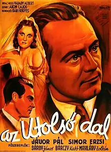 The Last Song (Hungarian: Az utolsó dal) is a 1942 Hungarian drama film directed by Frigyes Bán and starring Pál Jávor, Erzsi Simor and Kató Bárczy.[1] [2] It was shot at the Hunnia Studios in Budapest. The film's sets were designed by the art director János Pagonyi.