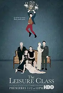The Leisure Class is a 2015 black comedy farce television film by HBO Films about a man who is trying to marry into a wealthy family and his unpredictable brother. The film was directed by Project Greenlight season four contest winner, Jason Mann, written by Project Greenlight season one winner Pete Jones and Mann, and produced by Effie T. Brown and Marc Jouburt. It is based on a 2012 short film produced and co-written by Mann that premiered at the 2013 Raindance Film Festival. Season 4 of Project Greenlight aired on HBO as a documentary series chronicling the selection of Mann and the production of the film.[2][3] The film premiered in Los Angeles in August 2015 and aired on HBO on November 2, 2015 to universal negative reception with a 0% on Rotten Tomatoes.[4]