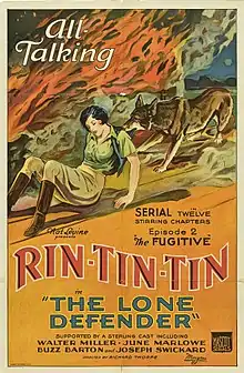 The Lone Defender is a 1930 American Pre-Code Mascot serial film starring Rin Tin Tin. It was Mascot's first all-sound serial (the second to have any sound at all, after the partial sound in The King of the Kongo). It was Rin Tin Tin's first serial at Mascot, after being dropped by Warner Bros. when they decided animal pictures would not work with "Talkies". He also starred in the later serial The Lightning Warrior, which was his last appearance (he died in 1932).[1]