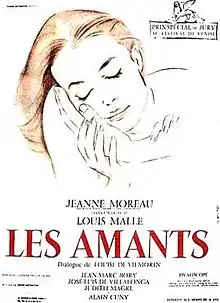 The Lovers (French: Les amants) is a 1958 French drama film directed by Louis Malle which stars Jeanne Moreau, Alain Cuny, and Jean-Marc Bory. Based on the posthumously-published 1876 short story "Point de Lendemain" ("No Tomorrow") by Dominique Vivant (1747-1825), the film concerns a woman involved in adultery who rediscovers human love. The Lovers was Malle's second feature film, made when he was 25 years old. The film was a box-office hit in France when released theatrically, gaining 2,594,160 admissions in France alone. The film was highly controversial when released in the United States for its depiction of allegedly obscene material. At the 1958 Venice Film Festival, the film won the Special Jury Prize and was nominated for the Golden Lion.