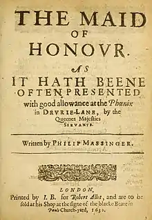 The Maid of Honour is a Jacobean era stage play, a tragicomedy written by Philip Massinger, first published in 1632.[1] It may be Massinger's earliest extant solo work.