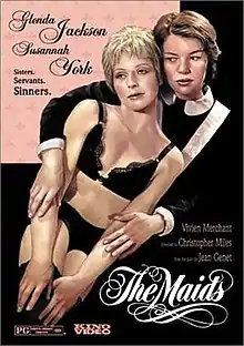 The Maids (French: Les Bonnes) is a 1975 British film that was directed by Christopher Miles. It is based on the play of the same title by the French dramatist Jean Genet. The film stars Glenda Jackson as Solange, Susannah York as Claire, Vivien Merchant as Madame, and Mark Burns as Monsieur. The film was produced by Ely Landau for the American Film Theatre, which presented thirteen film adaptations of plays in the United States from 1973 to 1975.[1]