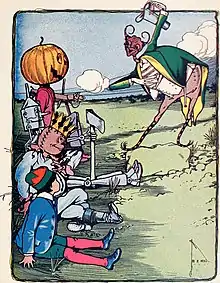 Jack Pumpkinhead, Tin Woodman, Scarecrow, and Tip meet the Woggle-Bug