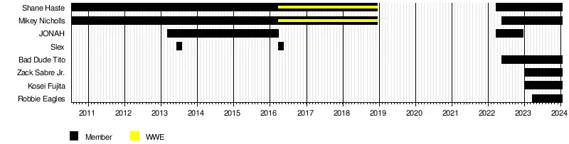 Members | Mikey Nicholls/Nick Miller[1] Shane Haste/Shane Thorne[1] Bad Dude Tito Zack Sabre Jr. Kosei Fujita Robbie Eagles |