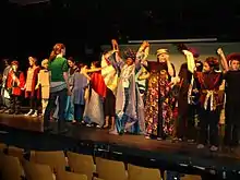 The Mirror Theater's summer wing in Greensboro, Vermont was formed in 2005,[27] called the Greensboro Arts Alliance and Residency (GAAR). GAAR mixed professional MRC company members with local community members[44] with the goal to expand cultural opportunities for Vermont's Orleans County.[45] Jim Lowe of The Times Argus said “The Greensboro Arts Alliance and Residency and The Mirror Theater are creating a new arts world in Greensboro, bringing local talent together with seasoned professionals for the greater community”.[46] In 2012, Tony-nominated actress Marla Schaffel became Artist-in-Residence for GAAR, starring first in The Sound of Music.[45] 2013's season included Marla Schaffel as “Marian” in Meredith Willson's The Music Man, directed by Sabra Jones, playing in repertory with Thorton Wilder’s Our Town, directed by GAAR Co-Artistic Director Charles McAteer and Edgar Lee Master’s Spoon River Anthology.[47] 2014’s production of Rodgers and Hammerstein's Carousel was called a “serious and elegant piece of theater”,[48] while Sabra Jones production of The Miracle Worker was named one of the “Best Bets” by the Burlington Free Press.[49] MRC company member and Golden Globe nominee Tina Chen also presented her one-woman show, entitled “Legacy of my Chinese Family".[45] GAAR celebrated their 10th anniversary in 2015 with three productions playing in repertory: Hamlet, directed by Sabra Jones, Tom Stoppard’s Rosencrantz and Guildenstern Are Dead, directed by Myriam Cyr, and Kiss Me Kate, starring Marla Schaffel and directed by Charles McAteer.[50] The Times Argus of Vermont called Hamlet a “powerful experience…potent and convincing” and wrote the company was “one of Vermont’s important theaters”.[50] The 2015 season also featured a lecture with RSC member and Olivier Award winner Brian Cox, who discussed his experiences performing and teaching Shakespeare.[50] GAAR also presented a children's production of You're a Good Man, Charlie Brown with a cast entirely of children featuring professional costumes, lighting, and set, and directed by Marla Schaffel with choreography by Lily McAteer.[51] In 2016, GAAR received the appellation of “the most powerful theater in Vermont” by The Times Argus;[52] the season consisted of To Kill a Mockingbird, directed by Sabra Jones, in repertory with Annie Get Your Gun, directed by MRC company member Sean Haberle and starring Marla Schaffel, and Joshua Sobol's Sinners. To Kill a Mockingbird was called “a great story well told” and Annie Get Your Gun was said to be “absolutely delightful… there is nothing like a song and dance musical, and this one was particularly good”.[46] Sinners, directed by Olivier Award winner Brian Cox, was the American premiere of Joshua Sobol’s play. About a woman who is condemned to be stoned to death for her affair, the production was said to be ultimately tender, beautiful, and deeply compelling due to the performances of the cast.[52] In 2016, Brian Cox joined Charles McAteer as Co-Artistic Director of The Mirror Theater, under Sabra Jones as Founding Producing Artistic Director.[53]