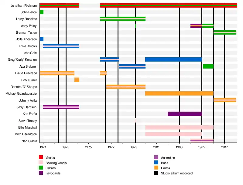 - Jonathan Richman – vocals, guitar (1970–1974, 1976–1988)