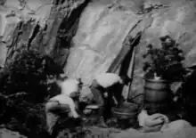 ![]() Moonshiners working at the still | |