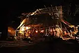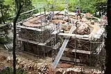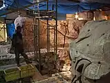 By August 2014, a kiln consisting of 200 tons of bricks was built around the shell and fired for 40 days, reaching a temperature of 1200 C.[1] The kiln was dismantled by 2015, and the bricks were used to create the seating for the amphitheater.[1]
