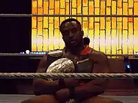 During the early months of 2019, Kingston became highly popular and was pushed to a title match at WrestleMania. After a praised participation in the Elimination Chamber match at the namesake pay-per-view, where he was defeated by the WWE Champion Daniel Bryan. He would face Bryan at WrestleMania 35, where he won the match to become the WWE Champion for the first time in his career. In doing so, he became the first African-born WWE Champion.[85] Kingston would retain the title against Kevin Owens,[86] Samoa Joe until he lost it against Brock Lesnar during SmackDown's 20th Anniversary on October 4.[87] During his reigns, Big E and Woods won the SmackDown Tag Team Championship, making The New Day record-tying four-time SmackDown Tag Team Champions (technically also making Kingston a double champion during this time due to the Freebird Rule).[88][89] They lost the titles to The Revival at Clash of Champions,[90] but regained it two months later, becoming record five-time champions.[91] At TLC: Tables, Ladders & Chairs, Big E and Kingston successfully defended the titles against The Revival in a ladder match.[92] At Super ShowDown on February 27, 2020, The New Day lost the titles to John Morrison and The Miz, ending their reign at 111 days.[93] At WrestleMania 36, Kingston, who represented The New Day, failed to win the titles back from Morrison, who represented himself and Miz, in a triple threat ladder match, also involving Jimmy Uso, who represented The Usos.[94][95] A rematch took place on the April 17 episode of SmackDown, where Big E, who represented The New Day, won the titles back from Miz, who represented himself and Morrison, in a triple threat match, also involving Jey Uso, who represented The Usos, and this makes The New Day six-time SmackDown Tag Team Champions.[96] At The Horror Show at Extreme Rules, The New Day would lose the championships to Cesaro and Shinsuke Nakamura in a Tables match. On the July 24 episode of SmackDown, Kingston revealed that he would be out of action for 6 weeks due to a back injury.[97][98] Big E would then embark on his singles run.[99]