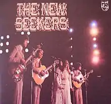 The New Seekers were formed in mid 1969 as a harmony group in the style of The Seekers who had recently disbanded. Formed by Keith Potger, who had been a member of The Seekers, he assembled a five-piece line-up of Laurie Heath, Chris Barrington, Marty Kristian, Eve Graham and Sally Graham.[1] This was the line-up that recorded the debut album which was released in January 1970. The eponymous album featured a mix of cover versions and original tracks, two of which were written by member Heath and another two by Kristian. Only one single was released from the album, "Meet My Lord".[2] Neither album nor single charted in the UK, although the group were beginning to build a reputation as a live act. A few months after this, Heath, Barrington and Sally Graham left the group, to be replaced by Peter Doyle, Paul Layton and Lyn Paul. This line-up would remain in place until May 1974, and would see the group achieve worldwide success.
