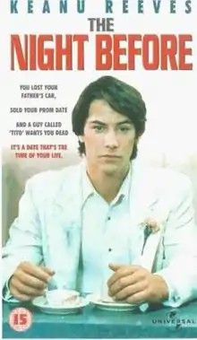 The Night Before is a 1988 American comedy film starring Keanu Reeves and Lori Loughlin. Reeves plays Winston Connelly, the so-called high school nerd and vice president of the astronomy club. Loughlin plays Tara Mitchell, the pretty and popular head cheerleader who also happens to be the local police chief's daughter. The Tagline was: "You lost your father's car, sold your prom date and a guy called 'Tito' wants you dead. It's a date that's the time of your life."