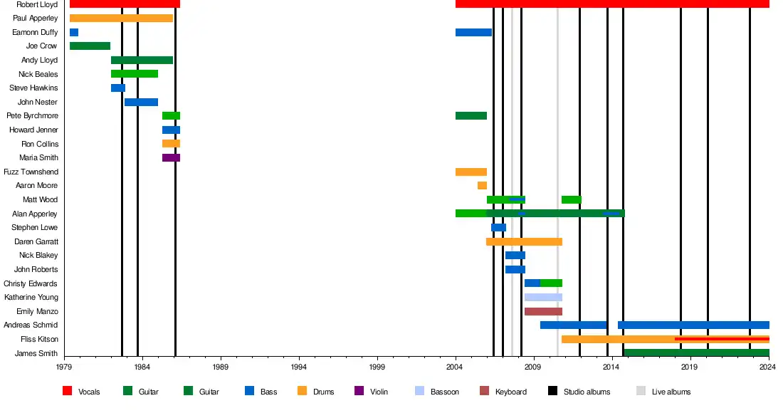 The original members were Robert Lloyd on vocals, Eamonn Duffy on bass and Paul Apperley on drums, all formerly of The Prefects. The band, before splitting up, played more sessions on John Peel's BBC Radio 1 show than any other band excluding The Fall and Half Man Half Biscuit.[2]
