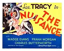 The Nuisance is a 1933 American pre-Code film starring Lee Tracy as a lawyer, Madge Evans as his love interest (with a secret), and Frank Morgan as his accomplice.