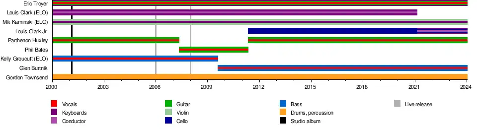 - Eric Troyer – keyboards, vocals, guitar (2000–present) (from ELO Part II)