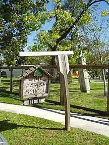 - ↑ West, Deena. "The Parish School Principal, Nancy Bewley, awarded Tina E. Bangs Award Archived 2013-02-05 at archive.today." Ultimate Memorial (Houston Chronicle). July 6, 2011. Retrieved on January 7, 2011.