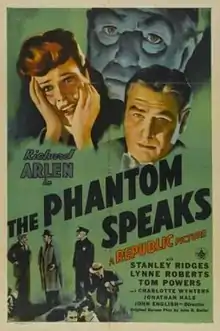 The Phantom Speaks is a 1945 American supernatural film noir directed by John English and written by John K. Butler. The film stars Richard Arlen, Stanley Ridges, Lynne Roberts, Tom Powers, Charlotte Wynters and Jonathan Hale. The film was released on May 10, 1945, by Republic Pictures.[1][2][3]