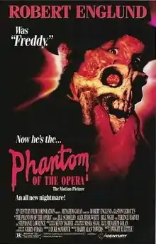 The Phantom of the Opera is a 1989 American horror film directed by Dwight H. Little and based on Gaston Leroux's 1910 novel of the same name. The film is an updated and gorier version of Leroux's classic tale, and stars Robert Englund as the Phantom. The film was a critical and commercial failure.