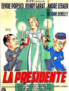 The President (French: La présidente) is a 1938 French comedy film directed by Fernand Rivers and starring Elvire Popesco, Henri Garat and André Lefaur.[1] It is based on the 1912 play of the same title by Maurice Hennequin.[2] The film's sets were designed by the art director René Renoux. The play was adapted again for the 1952 Italian film Mademoiselle Gobete.