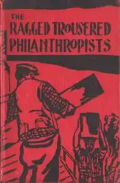 The Ragged-Trousered Philanthropists (1914) is a semi-autobiographical novel by Irish house painter and sign writer Robert Noonan, who wrote the book in his spare time under the pen name Robert Tressell. Published after Tressell's death from tuberculosis in the Liverpool Royal Infirmary in 1911, the novel follows a house painter's efforts to find work in the fictional English town of Mugsborough (based on the coastal town of Hastings) to stave off the workhouse for himself, his wife and his son. The original title page, drawn by Tressell, carried the subtitle: "Being the story of twelve months in Hell, told by one of the damned, and written down by Robert Tressell."[1]