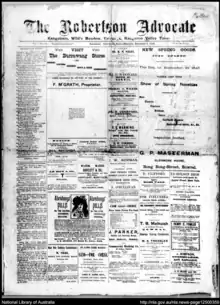 - ↑ "The Robertson advocate, State Library of NSW catalogue entry". Retrieved 5 September 2013.