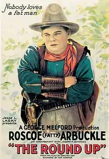 The Round-Up is a 1920 American silent Western film starring Roscoe "Fatty" Arbuckle and featuring Wallace Beery. The movie was written by Edmund Day and Tom Forman, directed by George Melford, and based on Day's play that was a huge hit for Roscoe Arbuckle's older cousin Macklyn Arbuckle and Julia Dean on the Broadway stage in 1907. It was Macklyn in the play who created the famous phrase used in advertisements of the film, nobody loves a fat man.[1]