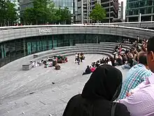 The Scoop is an outdoor amphitheatre situated on the south side of the River Thames near Tower Bridge in London, located next to City Hall, providing seating for approximately 800 people.[1] Designed by Townshend Landscape Architects, it is a venue used during the summer to show films, musical performances and theatre productions by such companies as The Steam Industry and The Pantaloons.[2] In June 2008, films shown at The Scoop included The Dam Busters, Atonement and Withnail and I.[3] The Scoop has been used as a performance venue since 2002.[4]