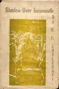 In late 1935, William L. Crawford's Visionary Publishing Company began the process of issuing The Shadow over Innsmouth as a book. The project came to fruition in November 1936 (although the copyright page declares the date of publication as April 1936), but the book had so many typographical errors that Lovecraft insisted on an errata sheet (which was also faulty). Lovecraft was displeased with the production; writing to his correspondent Lee McBride White on Nov 30, 1936, he wrote: "My Shadow over Innsmouth is now out - but as a first cloth-bound book it doesn't awake any enthusiasm in me. Indeed, it is one of the lousiest jobs I've ever seen - 30 misprints, slovenly format, & loose, slipshod binding. The solitary redeeming feature is the set of Utpatel illustrations - one of which, on the dust wrapper, saves the appearance of the thing..."[18]