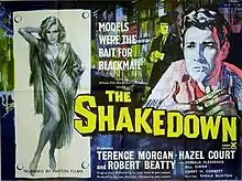 The Shakedown (also known as The Naked Mirror) is a 1959 black and white British crime-drama film directed by John Lemont, starring Terence Morgan, Hazel Court, and Donald Pleasence.[1] A ruthless crook runs a blackmail operation, falls for an undercover cop, and is murdered by one of his victims.