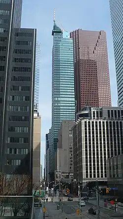 The building is located in Toronto's Financial District, at 325 Bay Street, on the southeast corner of Bay and Adelaide streets. Including the spire, it is the second-tallest building in Canada, the tallest mixed-use building in Toronto and the fourth-tallest structure in Toronto, as of 2020.