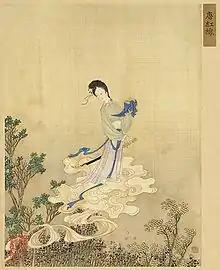 "Hongxian" is one of the eight chuanqi tales collected in Ganze yao (甘澤謠) or Ballads of Timely Rainfall by Yuan Jiao (袁郊; fl.868).[6] Although most modern scholars believe that Yuan wrote "Hongxian",[15] other commentators, for example E. D. Edwards and Liu Ying (劉瑛) have attributed authorship of the story to the eighth-century writer Yang Juyuan (杨巨源).[16] The original Ganze yao was lost during or before the Yuan dynasty, but "Hongxian" was partially preserved in Song dynasty leishu, whose editors had access to the original Ganze yao;[17] the Taiping Guangji was the earliest anthology to feature "Hongxian".[18]