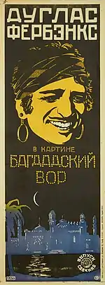 The Thief of Bagdad is a 1924 American silent swashbuckler film directed by Raoul Walsh and starring Douglas Fairbanks, and written by Achmed Abdullah and Lotta Woods. Freely adapted from One Thousand and One Nights, it tells the story of a thief who falls in love with the daughter of the Caliph of Baghdad. In 1996, the film was selected for preservation in the United States National Film Registry by the Library of Congress as being "culturally, historically, or aesthetically significant".[2][3]
