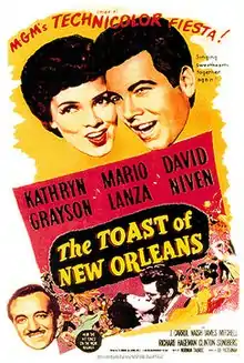 The Toast of New Orleans is a 1950 MGM musical film directed by Norman Taurog and choreographed by Eugene Loring. It stars Mario Lanza, Kathryn Grayson, David Niven, J. Carrol Naish, James Mitchell and Rita Moreno. The film was made after That Midnight Kiss, Lanza's successful film debut, as an opportunity for Lanza to sing on the big screen again.