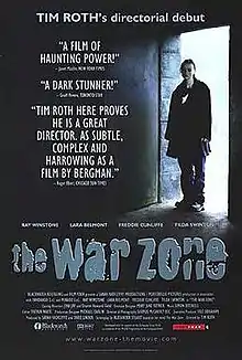 The War Zone is a 1999 British drama film written by Alexander Stuart, directed by Tim Roth in his directorial debut, and starring Ray Winstone, Tilda Swinton, Lara Belmont, and Freddie Cunliffe. The film is based on Stuart's 1989 novel of the same name and takes a blunt look at incest and sexual violence in an English family.
