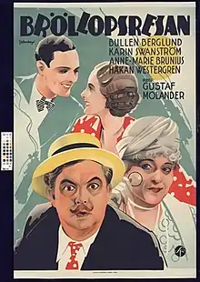 The Wedding Trip (Swedish: Bröllopsresan) is a 1936 Swedish comedy film directed by Gustaf Molander and starring Håkan Westergren, Anne-Marie Brunius and Karin Swanström.[1] It was shot at the Råsunda Studios in Stockholm and on location in Copenhagen and on the French Riviera. The film's sets were designed by the art director Arne Åkermark. It is based on the 1932 play Da stimmt was nicht by Franz Arnold.