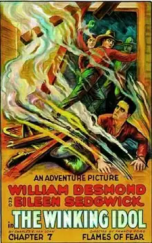 The Winking Idol is a 1926 American silent Western film serial, consisting of 10 chapters, starring William Desmond and Eileen Sedgwick. Directed by Francis Ford, the screenplay was written by Arthur Henry Gooden, George Morgan and Charles E. van Loan. This serial was released by Universal Pictures and is considered to be a lost film.[1]