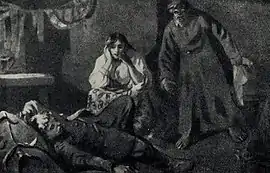 Saveliy seems to seriously think that his wife is a witch, who intentionally brings about storms in order to lure the young men who'd lose their way into the house, to seduce them. Raisa tries to reason with him, saying that when her father was alive, "all sorts of people used to come to him to be cured of the ague," and nobody accused him of witchcraft, even if he was a healer. Saveliy points out that those coming to their hut looking for help are invariably young men, 'looking for mischief'.