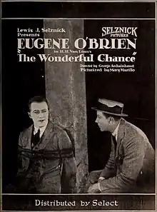 The Wonderful Chance (also The Thug and His Wonderful Chance) is a 1920 American silent crime drama film produced by Lewis Selznick and released by Select Pictures. This picture stars Eugene O'Brien in a dual role and was directed by George Archainbaud. While this film survives today in several archives, it is best known for featuring Rudolph Valentino in a villain role rather than the hero. In the 1960s scenes from the film were used in the documentary The Legend of Rudolph Valentino (1961) narrated by Graeme Ferguson.[2][3][4]