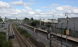 Theale has three platforms. Platforms 1 and 2 serve the up and down main line, and platform 3 is a former goods loop upgraded to passenger standards in 2011.[3]