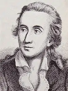 Among others of his better known works were Über die Ehe (1774) and Über die bürgerliche Verbesserung der Weiber (1792).[2] In the latter essay, Hippel argued that the natural traits of women make them superior for many tasks, especially education. According to Jane Kneller, Hippel's "central claim" in this essay is that "excluding women from the public square is a travesty of justice that prevents the advancement of humanity toward genuine civilization."[2] Timothy F. Sellner has produced an English translation of this work under the title On Improving the Status of Women.[3] Hippel was once called the fore-runner of Jean Paul, and had some resemblance to this author, in his constant digressions and in the interweaving of scientific matter in his narrative. Like Richter he was strongly influenced by Laurence Sterne.[2] He never married.