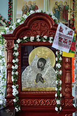 The Theotokos of Buchyn is an icon which allegedly appeared in the 18th century[1] and honored as miraculous by the Orthodox Christians of Volyn, Rivne (Ukraine), and Pinsk (Belarus) Polesye. The icon measures 65x80 cm.