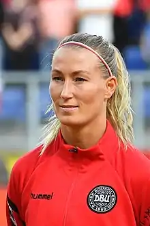 She was named to Kenneth Heiner-Møller's squad for UEFA Women's Euro 2013[16] and she was also part of Danish squad, who received silver at the UEFA Women's Euro 2017 in Netherlands.[17]