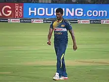 Narangoda Liyanaarachchige Thisara Chirantha Perera (Sinhala: තිසර පෙරේරා; born 3 April 1989), popularly as Thisara Perera, is a former Sri Lankan international cricketer who played all formats for the national team. He also captained the team in limited-overs formats.[1] Domestically he plays for Sri Lanka Army Sports Club in the Premier Trophy and Premier Limited-Overs Tournament, and the Jaffna Stallions in the Lanka Premier League. Perera has played franchise T20 cricket all around the world for numerous leagues. Primarily a bowling all-rounder, he is an aggressive left-handed batsman who can hit big sixes in death overs and is a useful right-arm medium-fast bowler.