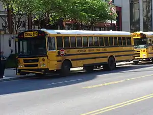 In 1936, Thomas Car Works secured part of a bid to produce 500 school bus bodies for North Carolina. As the company was only financially able to acquire materials for 200 bodies, North Carolina split the bid between Thomas and Hackney Brothers.[2] Dependent on length, Thomas offered wood-bodied school buses for $195 to $225.[2] Following the completion of its second school bus bid in 1937, the company focused nearly all production on school bus bodies.[2] In what is a long tradition that continues to the present day, Thomas remains the primary supplier of school buses to North Carolina.[1]