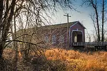 Several covered bridges have spanned Thomas Creek since the late 19th century, some of them replacements for damaged or demolished bridges at the same spots.[13] Three of these bridges—Gilkey, Shimanek, and Hannah—still cross the creek, while two—Weddle and Jordan—have been moved to cities outside the Thomas Creek watershed.[13] The three that still cross the creek are on the National Register of Historic Places (NRHP).[14][15][16] The Weddle Bridge was listed on the NRHP in 1979 but delisted in 1991 after its move to Sweet Home.[17]