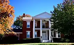 Thomas Nelson House, also known as Forest Hill, is a historic home located at Boonville, Cooper County, Missouri. It was built in 1843, and is a two-story, Greek Revival style brick dwelling with a rear ell. Symmetrical, flanking one-story wings were added about 1946. It has a side gable roof and features a two-story gabled, pedimented front portico, constructed about 1853. The house is in the George Caleb Bingham painting "Forest Hill the Nelson Homestead."[2]: 2