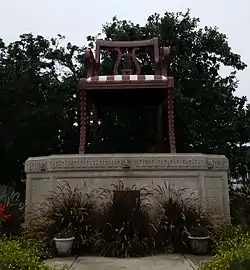 Thomasville is commonly referred to as the "Chair Town" or "Chair City", in reference to a 30-foot (9.1 m) landmark replica of a Duncan Phyfe armchair that rests in the middle of the city. The original "Big Chair" was constructed in 1922 by the now-defunct Thomasville Furniture Industries (formerly the Thomasville Chair Company) out of lumber and Swiss steer hide to reflect the city's prominent furniture industry. However, this chair was scrapped in 1936 after 15 years of exposure to the weather. In 1951, a larger concrete version of the chair was erected with the collaboration of local businesses and civic organizations and still remains today. The Big Chair gained national attention in 1960 when then presidential candidate Lyndon B. Johnson greeted supporters on the monument during a campaign whistle stop.[8] Although larger ones have been built, many Thomasville residents still boast that the Big Chair between the two Main Streets is the "World's Largest Chair".