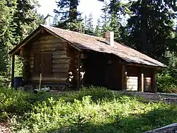 The Three Lakes Patrol Cabin was built in 1934 in Mount Rainier National Park as a district ranger station. The log cabin was built to a standard plan designed by W.G. Carnes, Acting Chief Architect of the National Park Service Branch of Plans and Designs, supervised by Thomas Chalmers Vint. The cabin measures about 13.5 feet (4.1 m) by 24 feet (7.3 m). It is a simple gable structure with a shed roof over the front door, supported by brackets. The eaves have a similar bracket detail. Log ends project prominently at the corners. It consists of a single room, unfinished apart from a wood floor.[2]