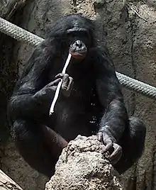 A bonobo "fishing" for termites, an example of incomplete/"untrue" opposition[6]