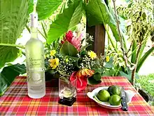 Ti' punch (Haitian Creole: Ti ponch, [ti pɔ̃ʃ]; French: Petit Ponch) literally meaning "small punch", is a rum-based mixed drink that is especially popular in Martinique, Guadeloupe, Haiti, French Guiana, Réunion, and other French-speaking Caribbean islands.[1] It is also the national cocktail of Martinique and Guadeloupe.[2][3] It is very similar to the daiquiri, which is usually identified with Cuba, and the caipirinha, identified with Brazil. The ti' punch is distinguished from these by its use of rhum agricole, and by typically having less lime juice.[4][5][6]